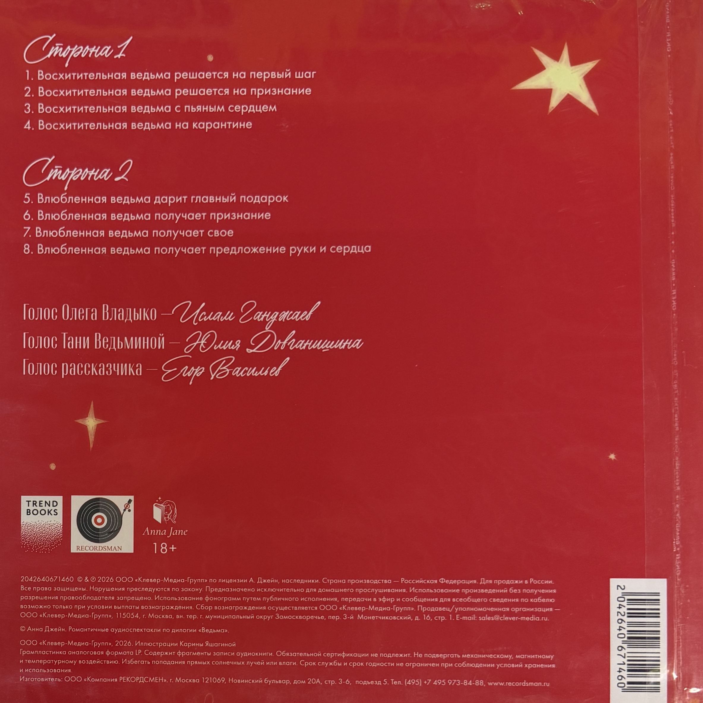 Винил купить Анна Джейн - Романтические аудиоспектакли по дилогии Ведьма (Россия 2026г.) в магазине Мир винила в Москве. Цена пластинки 5200 руб. Доставка по РФ и СНГ