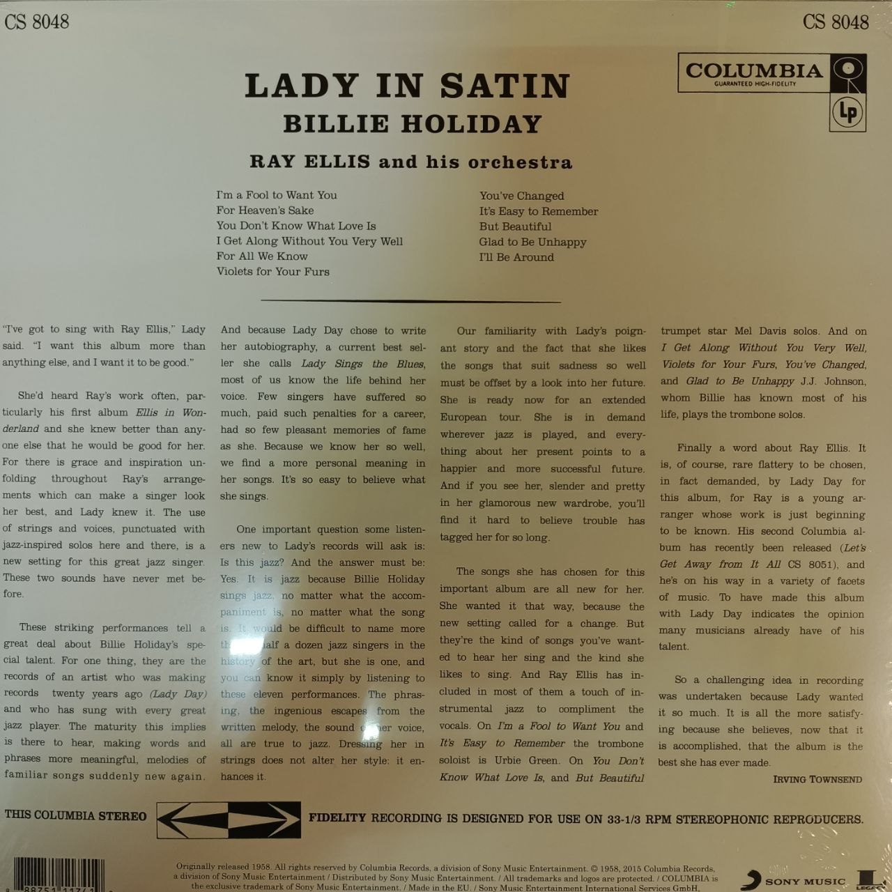 Винил купить Billie Holiday With Ray Ellis And His Orchestra – Lady In Satin (Европа 2015г.) в магазине Мир винила в Москве. Цена пластинки 4200 руб. Доставка по РФ и СНГ