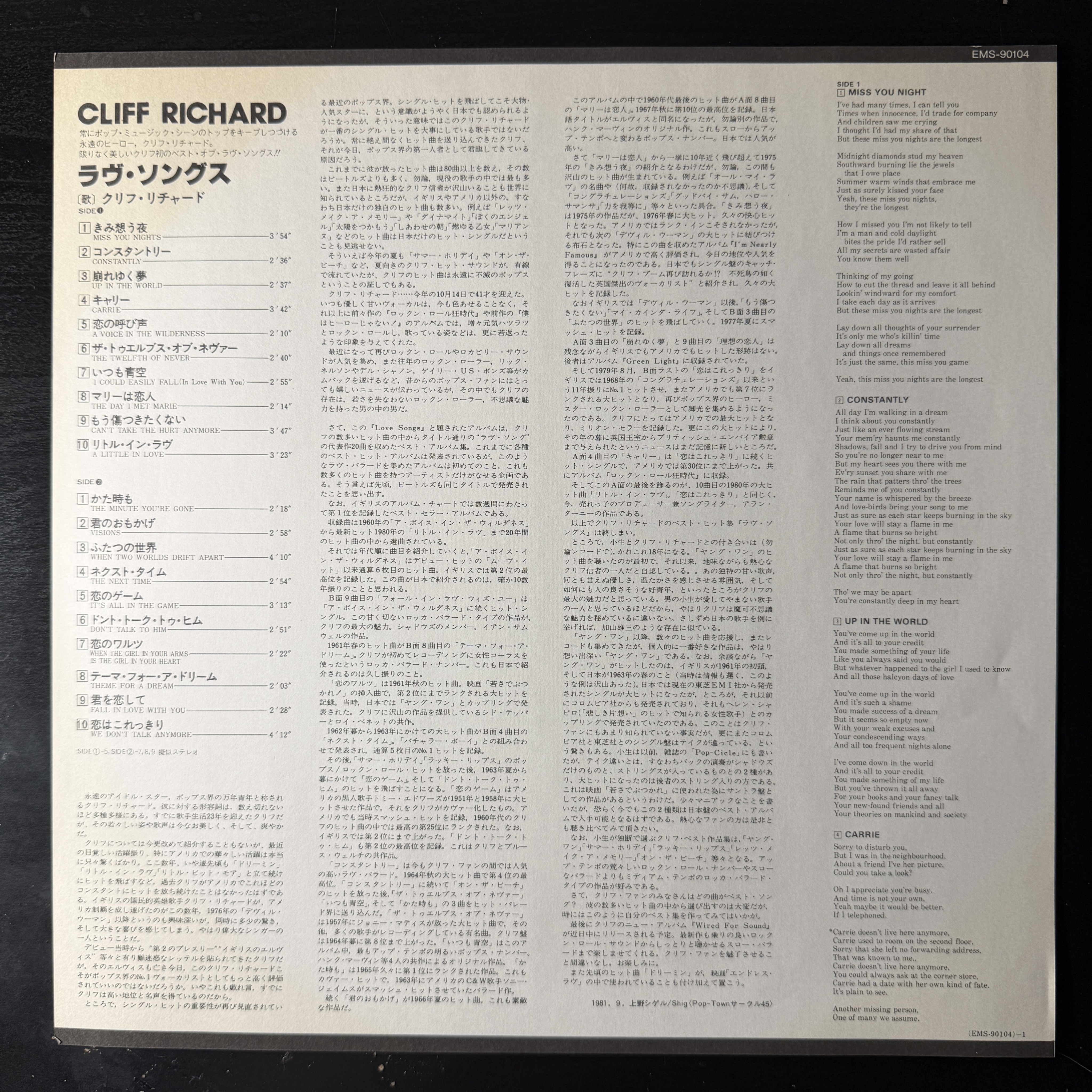 Винил купить Cliff Richard – Love Songs (Япония 1981г.) в магазине Мир винила в Москве. Цена пластинки 3700 руб. Доставка по РФ и СНГ