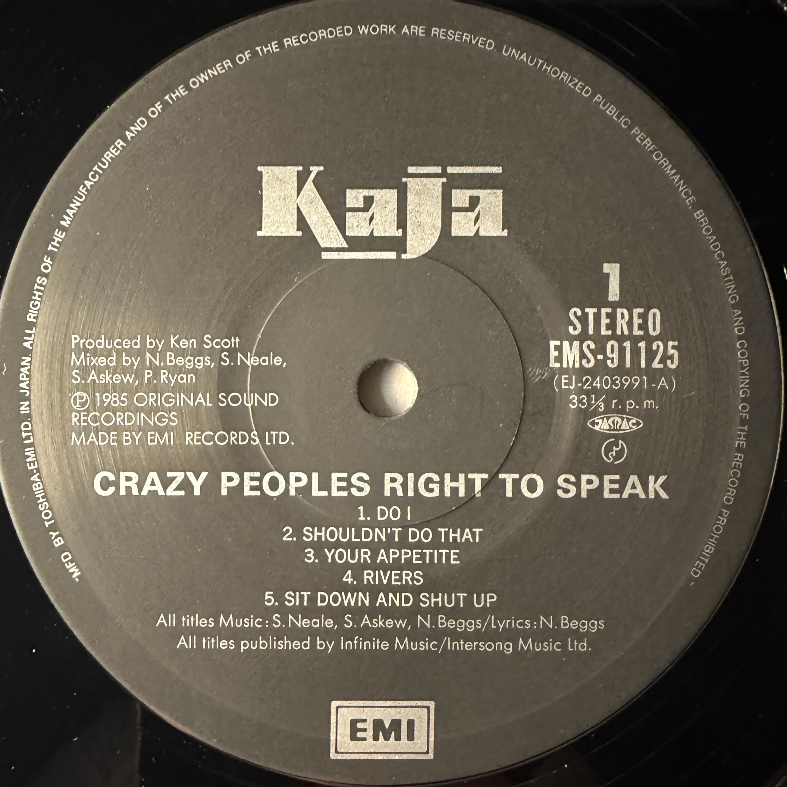 Винил купить Kaja – Crazy Peoples Right To Speak (Япония 1985г.) в магазине Мир винила в Москве. Цена пластинки 3900 руб. Доставка по РФ и СНГ