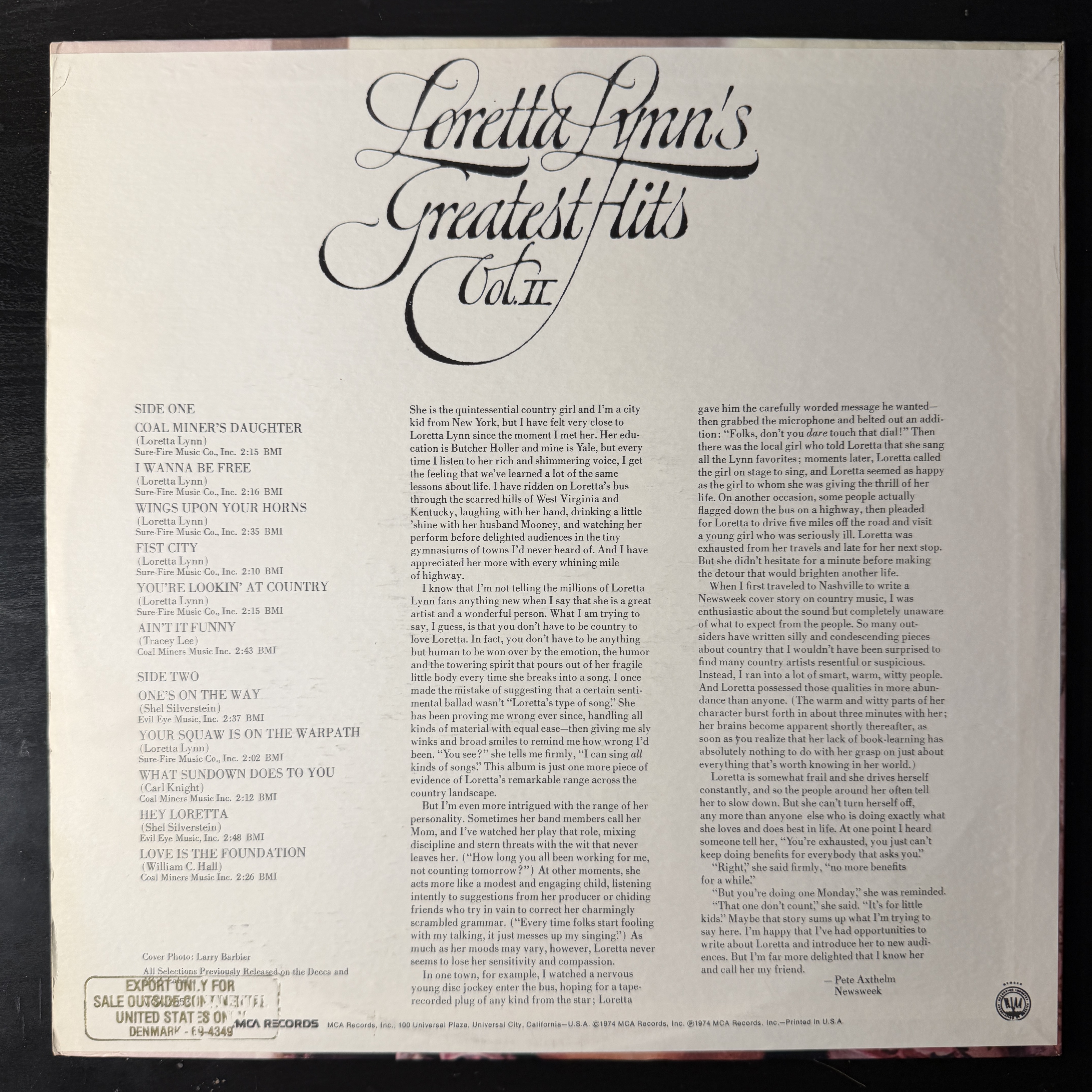 Винил купить Loretta Lynn – Loretta Lynn's Greatest Hits Vol. II (США 1981г.) в магазине Мир винила в Москве. Цена пластинки 2900 руб. Доставка по РФ и СНГ