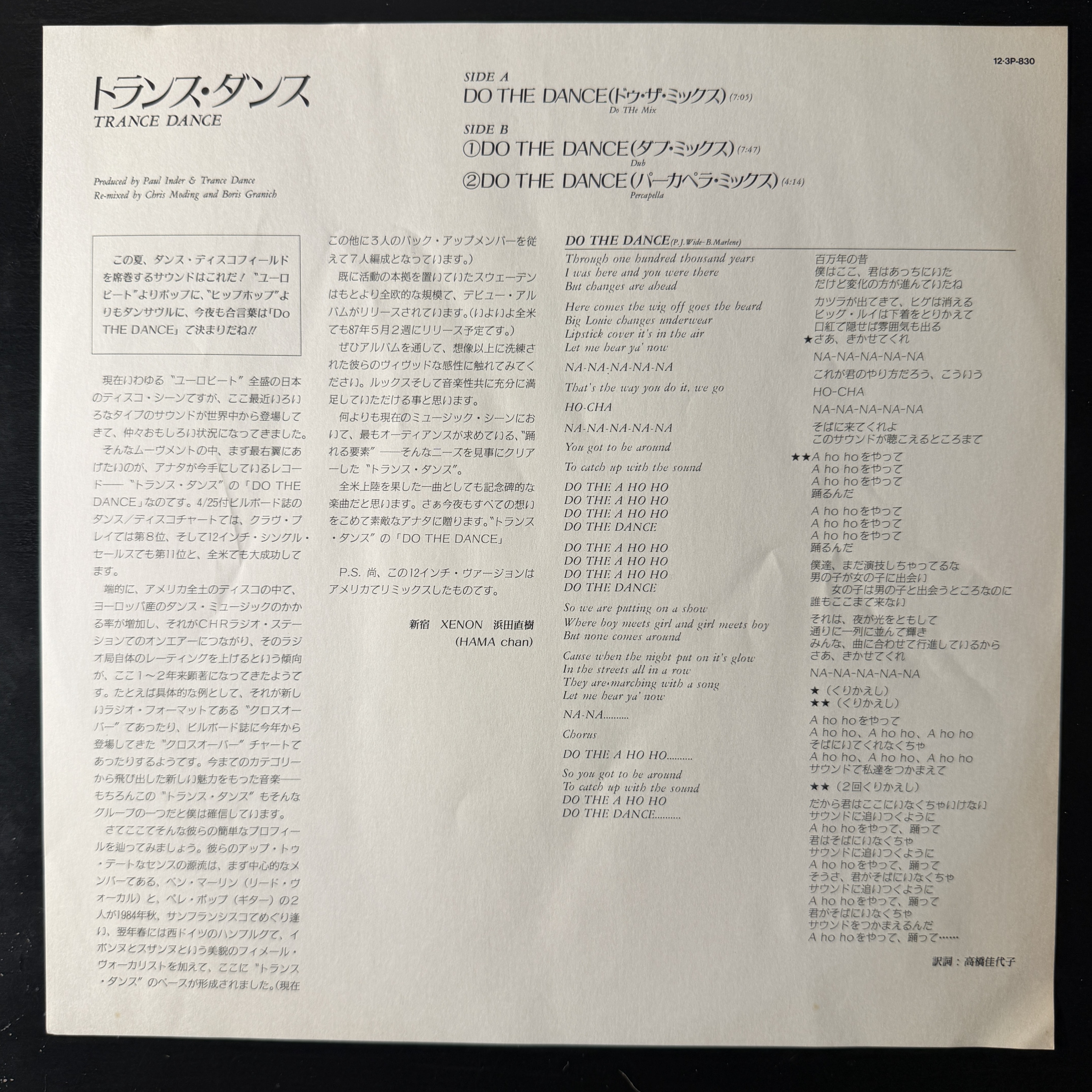 Винил купить Trance Dance – Do The Dance (Япония 1986г.) в магазине Мир винила в Москве. Цена пластинки 2900 руб. Доставка по РФ и СНГ