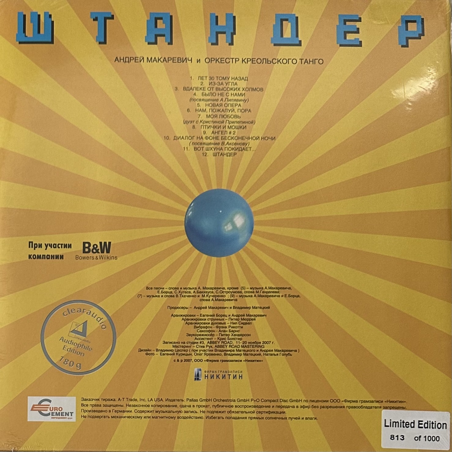 Винил купить Андрей Макаревич И Оркестр Креольского Танго – Штандер (Россия 2007г.) Limited edition в магазине Мир винила в Москве. Цена пластинки 8 200 руб. Доставка по РФ и СНГ
