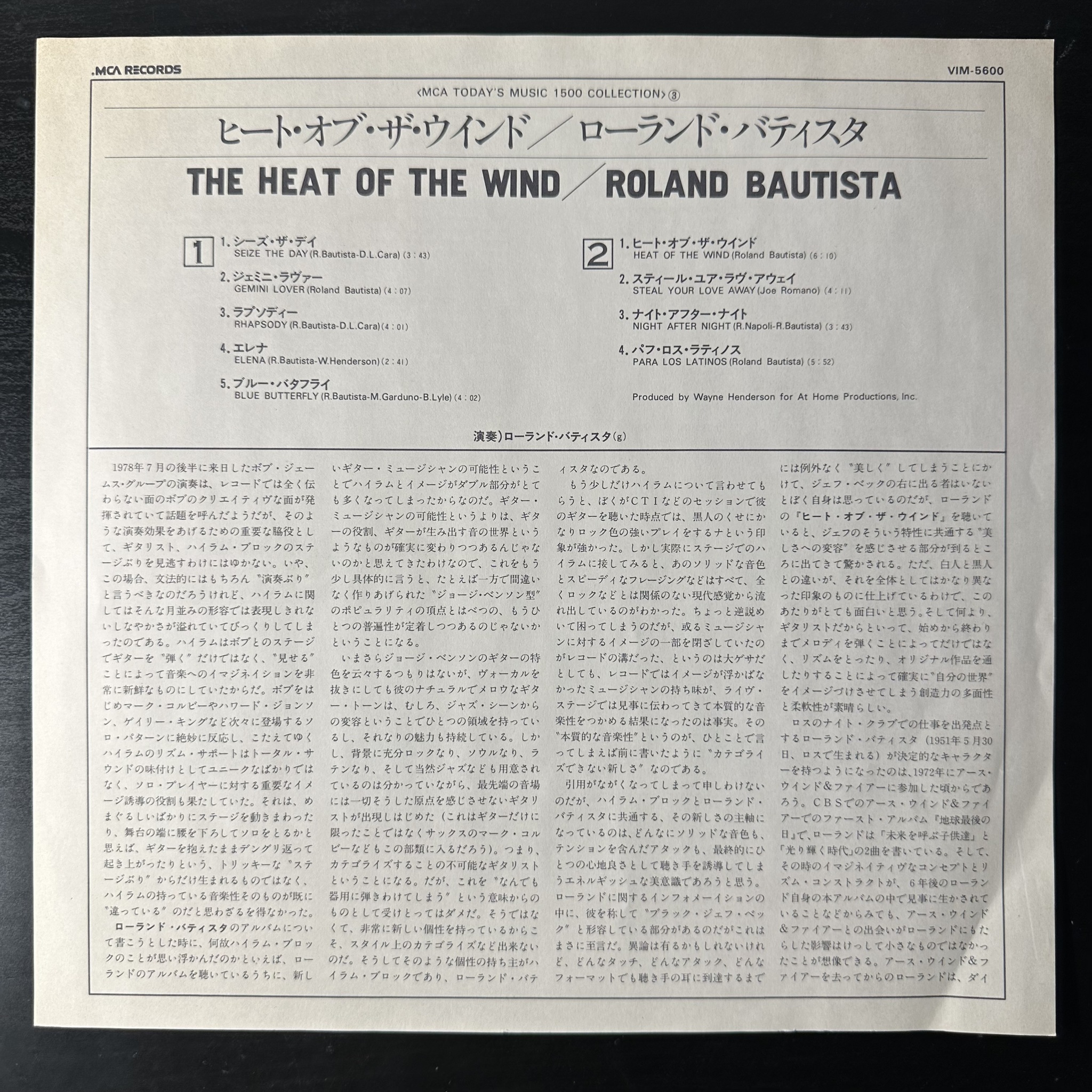 Винил купить Roland Bautista – The Heat Of The Wind (Япония 1982г.) в магазине Мир винила в Москве. Цена пластинки 3 900 руб. Доставка по РФ и СНГ