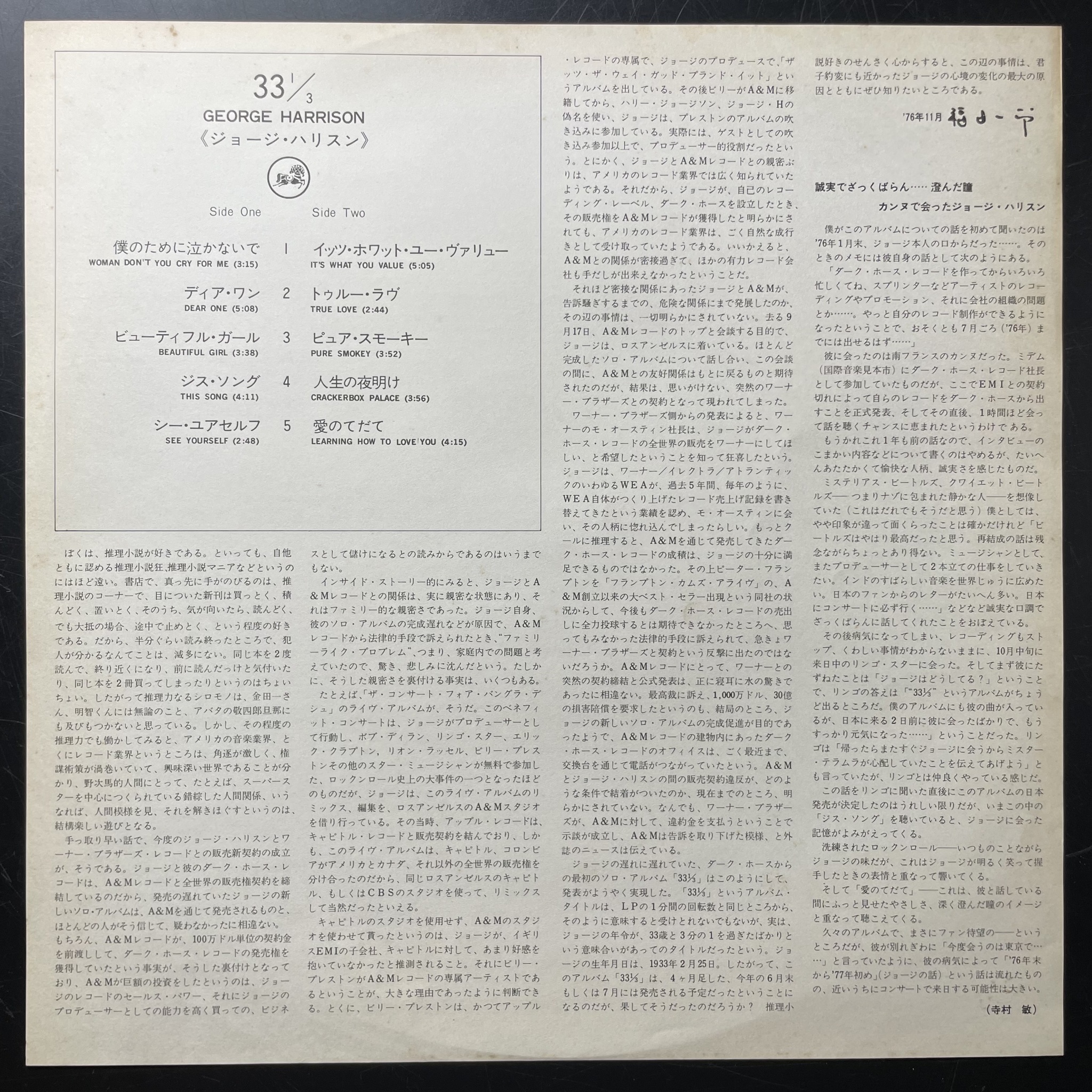 Винил купить George Harrison – Thirty Three & 1/3 (Япония 1976г.) в магазине Мир винила в Москве. Цена пластинки 4400 руб. Доставка по РФ и СНГ