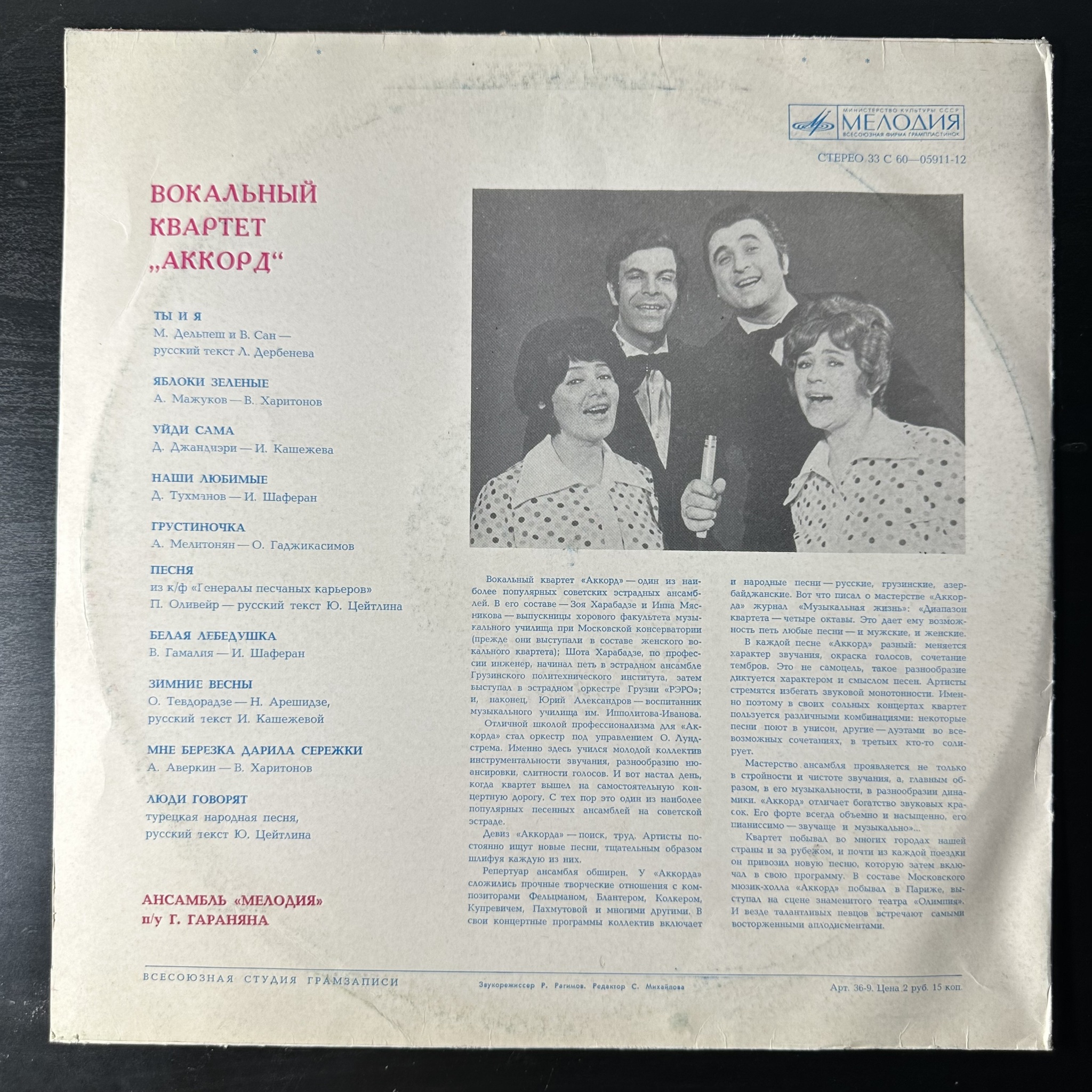 Винил купить Аккорд – Вокальный Квартет «Аккорд» (СССР 1975г.) в магазине Мир винила в Москве. Цена пластинки 2900 руб. Доставка по РФ и СНГ