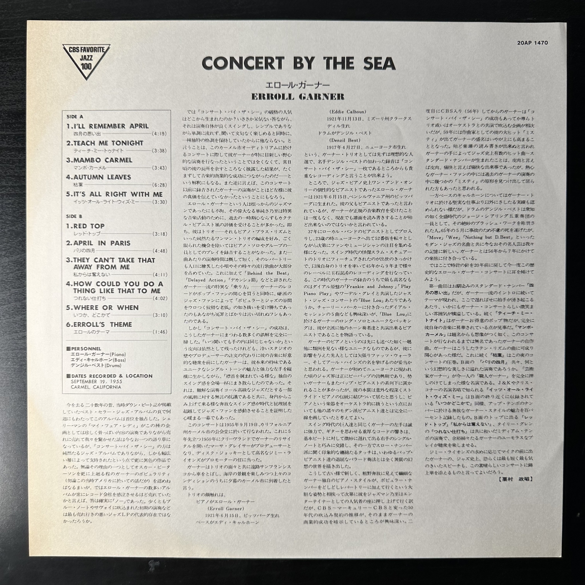 Винил купить Erroll Garner - Concert By The Sea (Япония 1979г.) в магазине Мир винила в Москве. Цена пластинки 5 300 руб. Доставка по РФ и СНГ