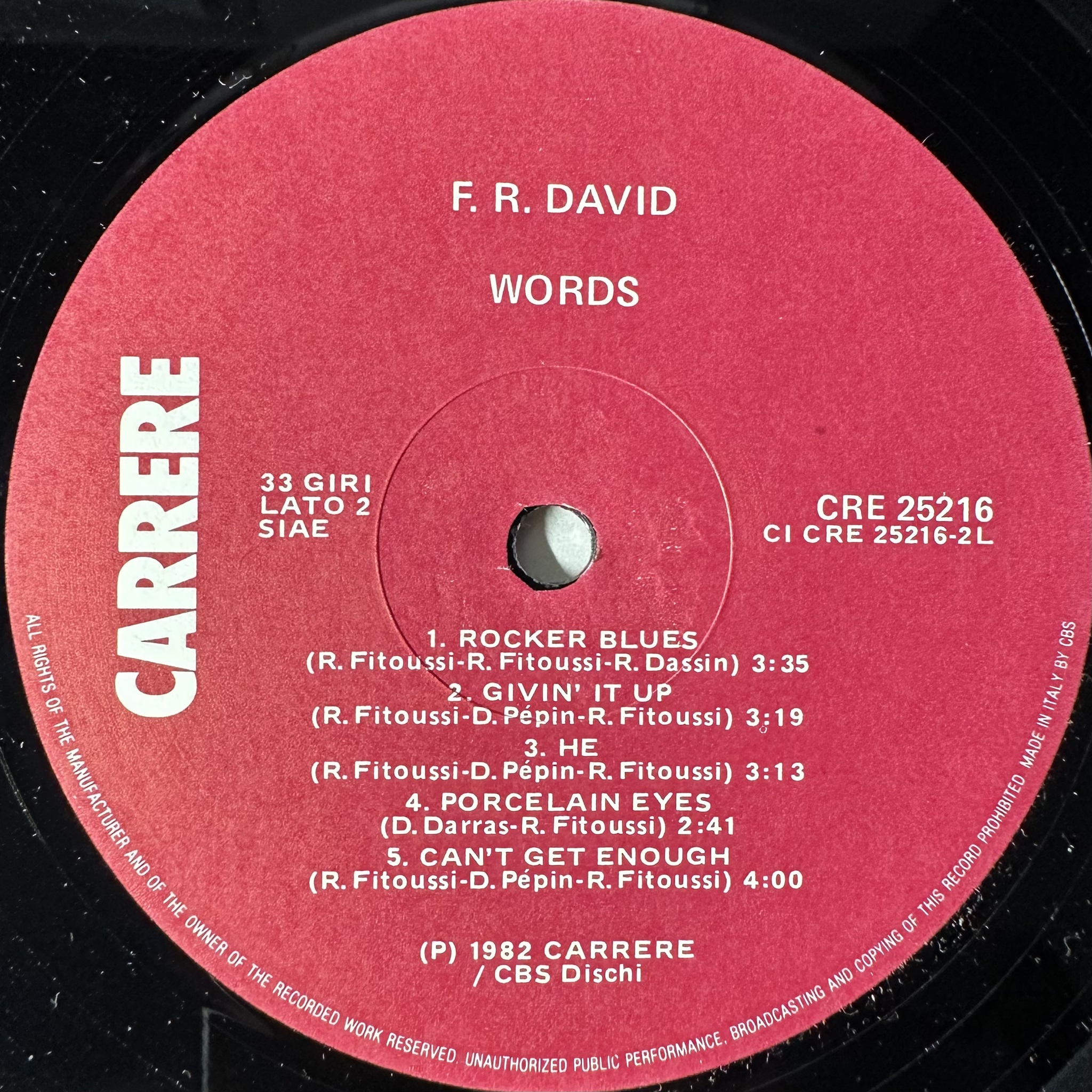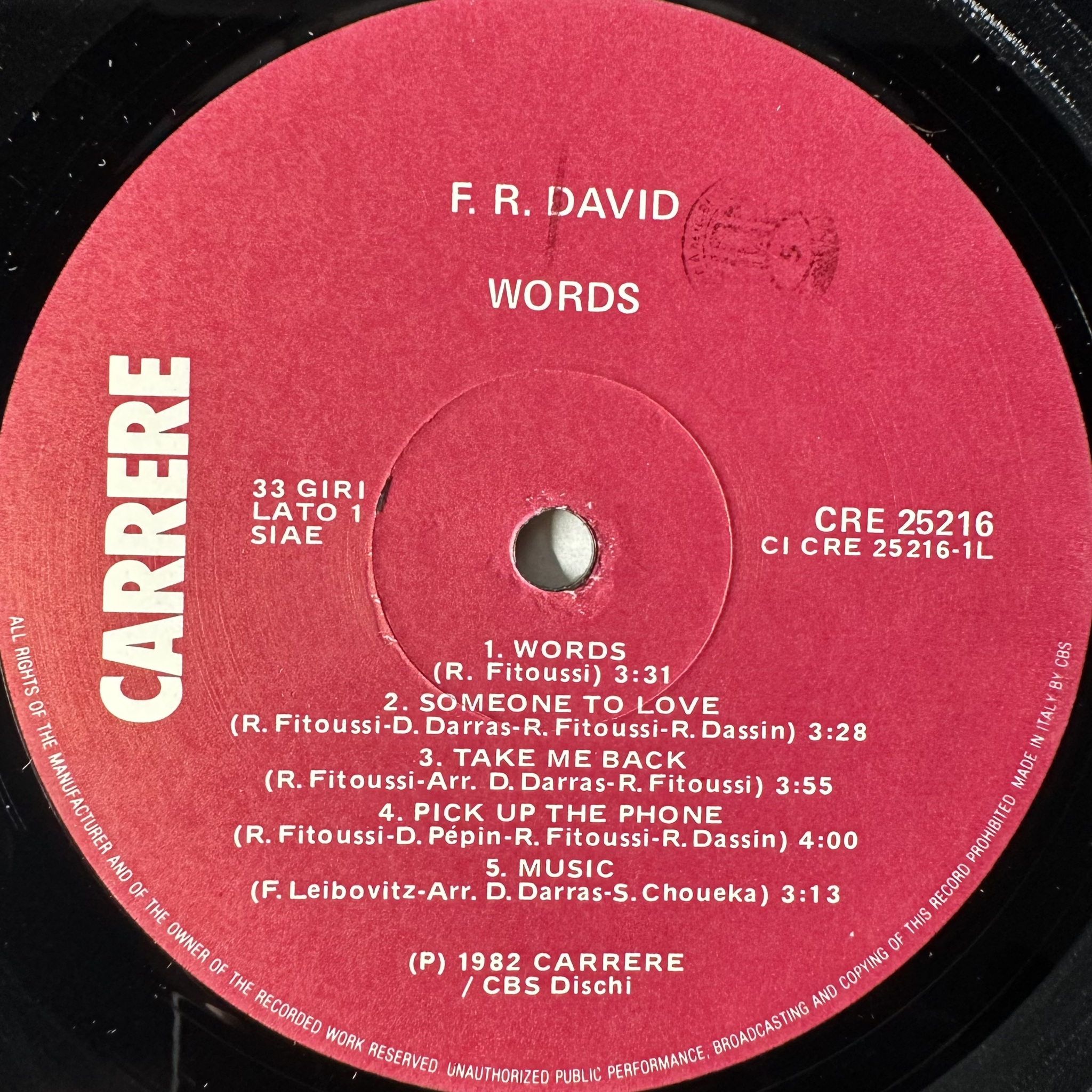 Винил купить F.R. David – Words (Италия 1982г.) в магазине Мир винила в Москве. Цена пластинки 3 400 руб. Доставка по РФ и СНГ