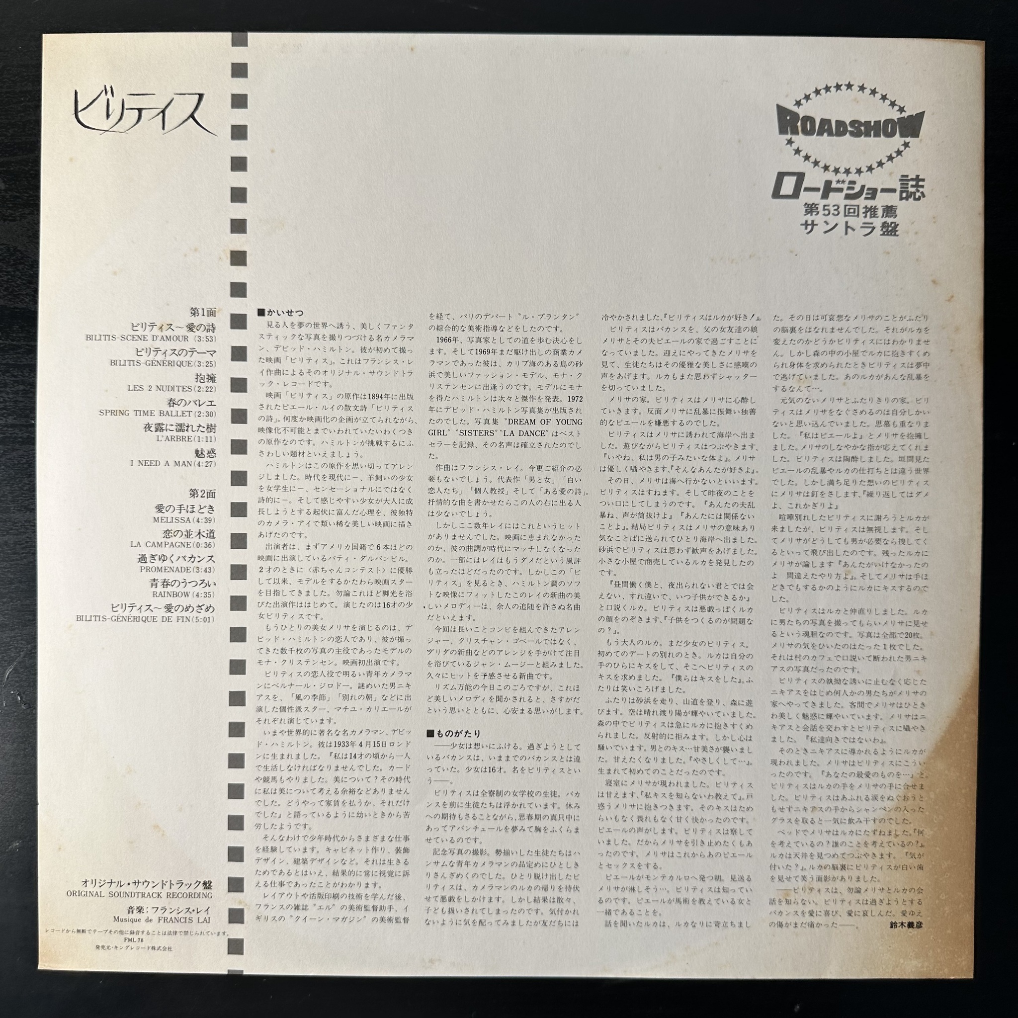 Винил купить Francis Lai - Bilitis (Япония 1977г.) в магазине Мир винила в Москве. Цена пластинки 3 200 руб. Доставка по РФ и СНГ