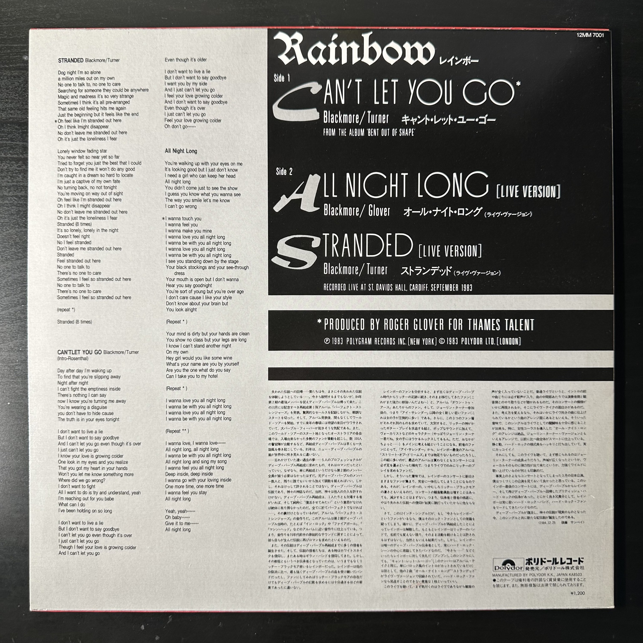 Винил купить Rainbow – Can't Let You Go (Япония 1985г.) 12", 45 RPM в магазине Мир винила в Москве. Цена пластинки 2 900 руб. Доставка по РФ и СНГ