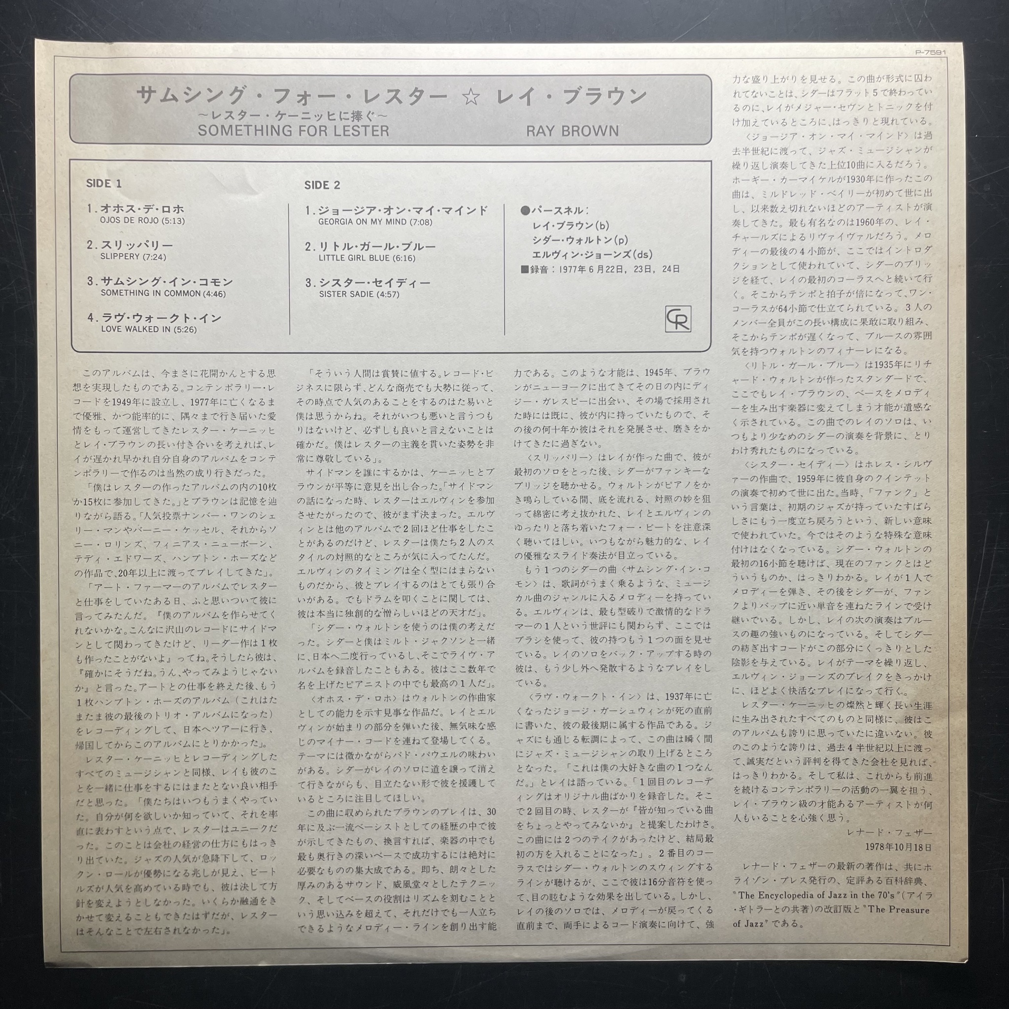 Винил купить Ray Brown – Something For Lester (Япония) 4200 руб. Доставка по РФ и СНГ