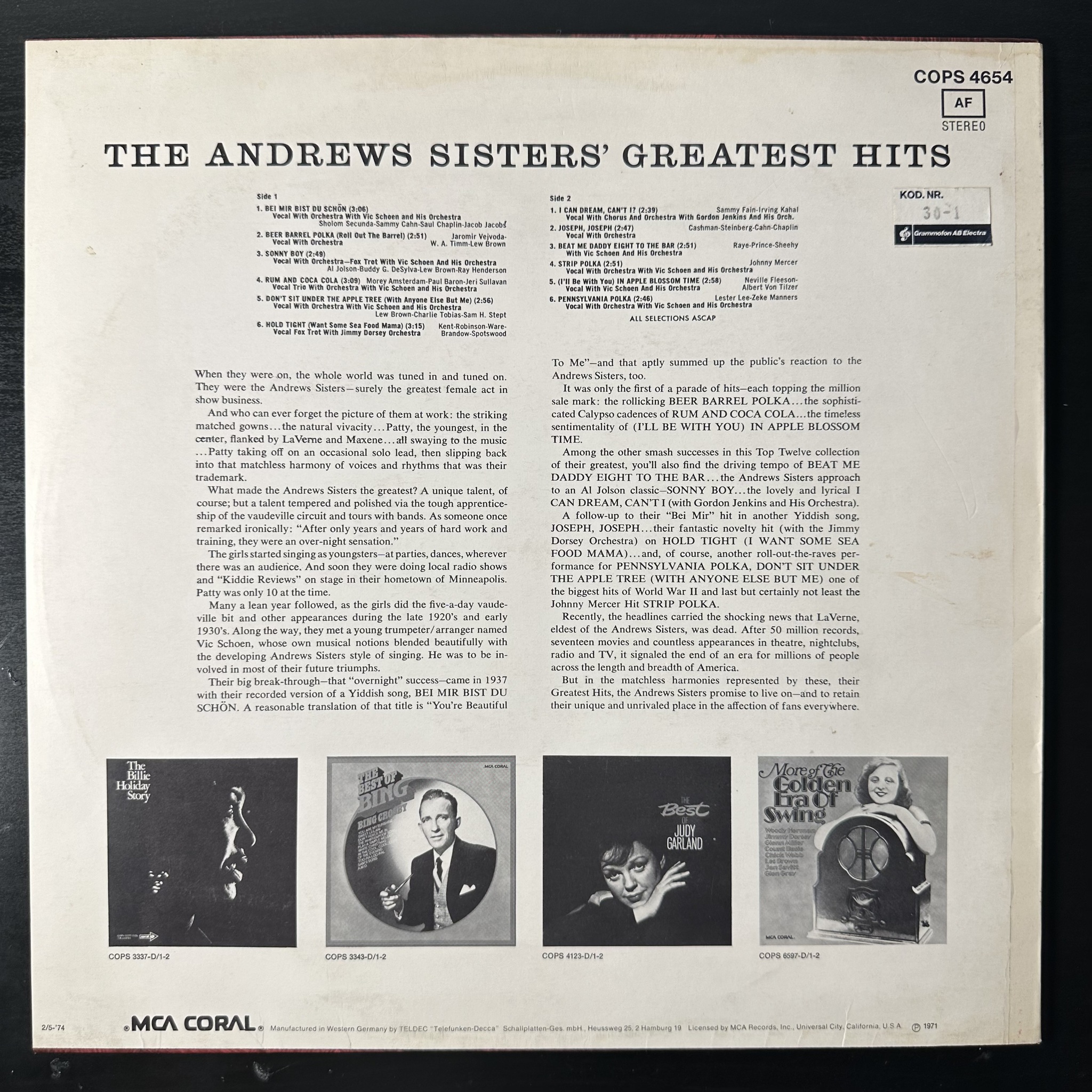 Винил купить The Andrews Sisters – Greatest Hits (Германия 1974г.) в магазине Мир винила в Москве. Цена пластинки 2 900 руб. Доставка по РФ и СНГ