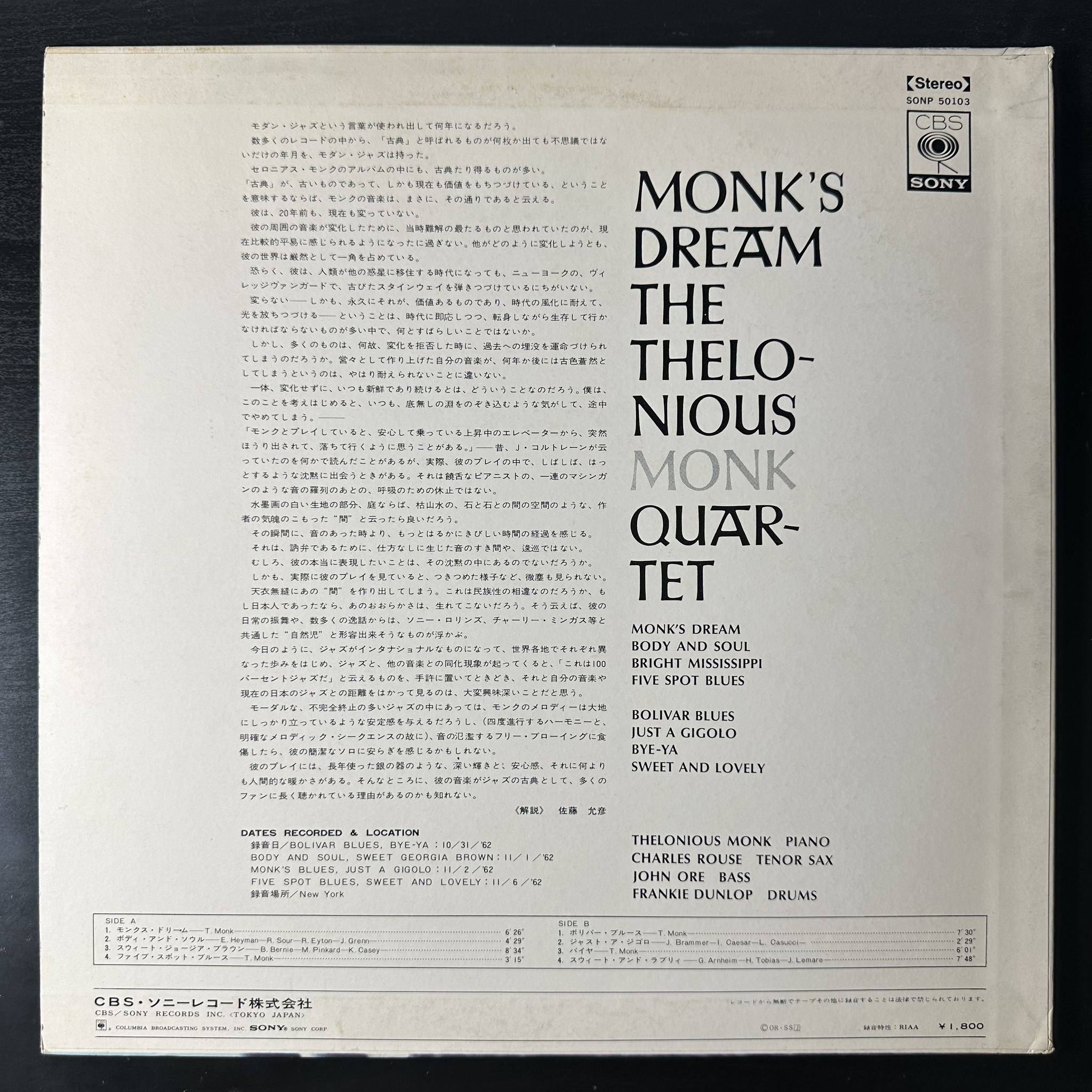Винил купить The Thelonious Monk Quartet – Monk's Dream (Япония 1969г.) в магазине Мир винила в Москве. Цена пластинки 5 300 руб. Доставка по РФ и СНГ
