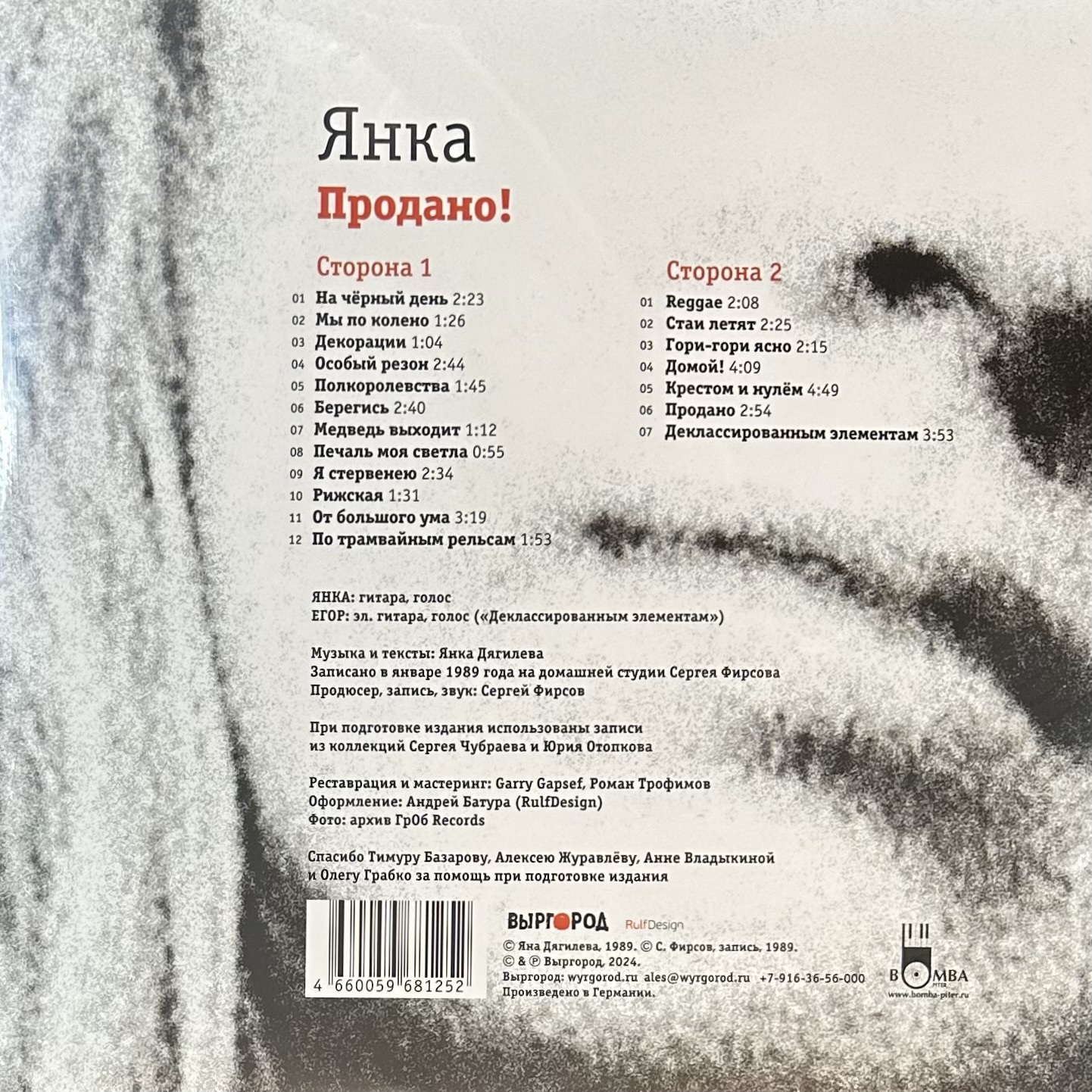 Винил купить Янка – Продано! Акустика (Россия 2024г.) в магазине Мир винила в Москве. Цена пластинки 3900 руб. Доставка по РФ и СНГ